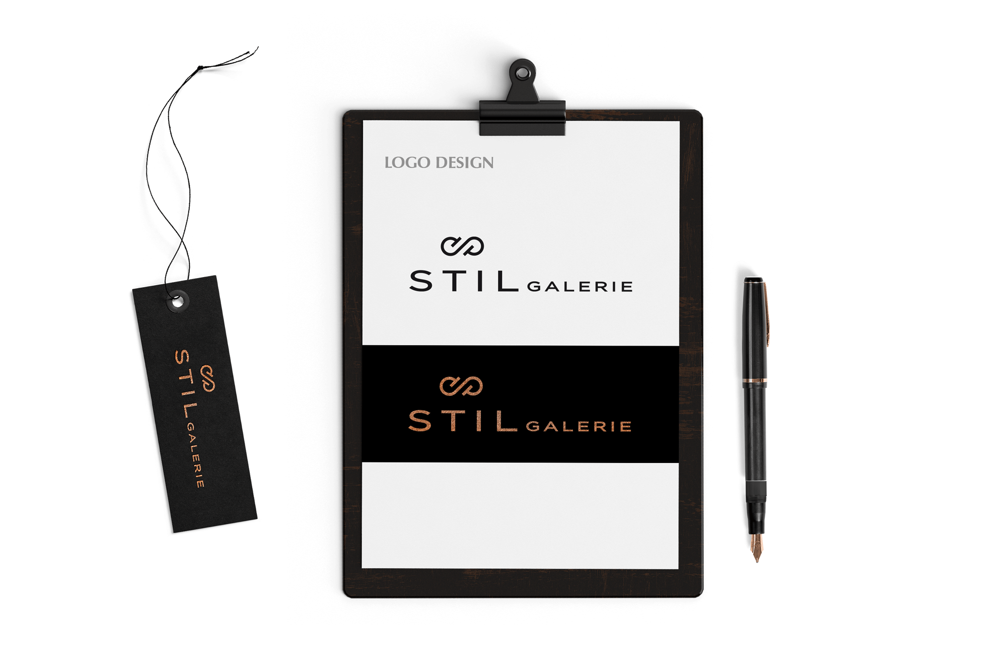 einfarbiges Logo, femininer Schriftzug mit moderner Hintergrund Grafik und hohem Wiedererkennungswert.