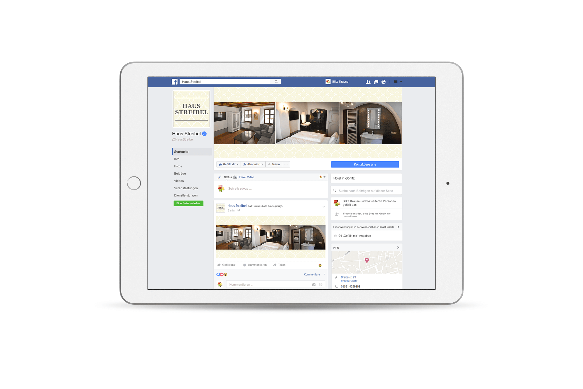 Einrichtung mit Vergabe der Administratorrecht, grafische Erstellung und Betreuung der Facebookseite