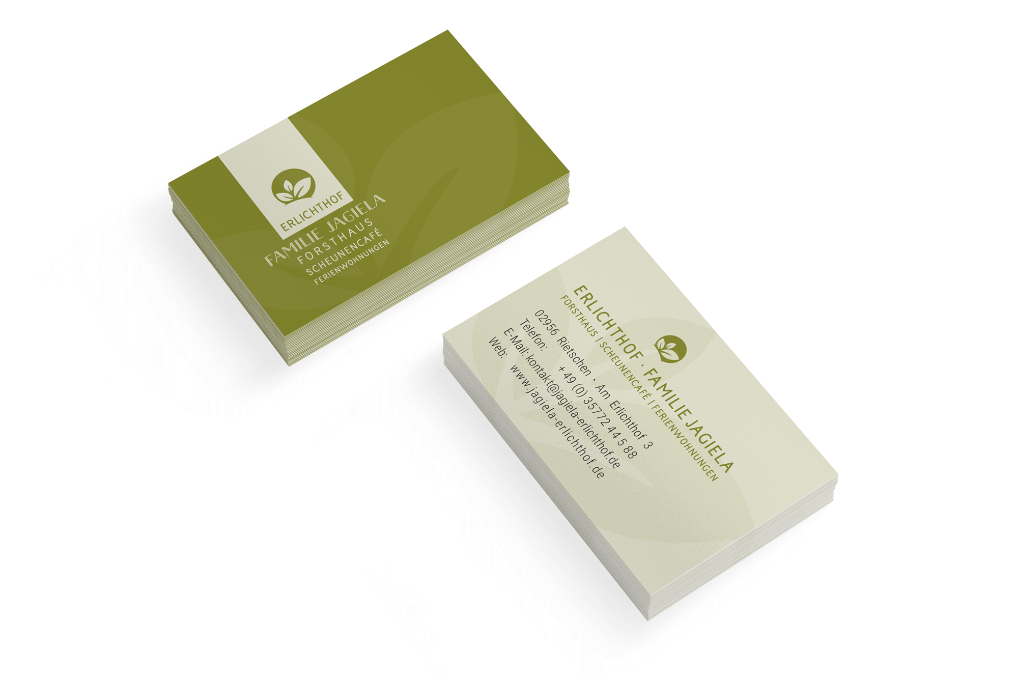 Erstellung Visitenkarte 2-seitig im Corporate Design vom Erlichthof Familie Jagiela, Forsthaus - Scheunencafé & Ferienwohnungen Rietschen.