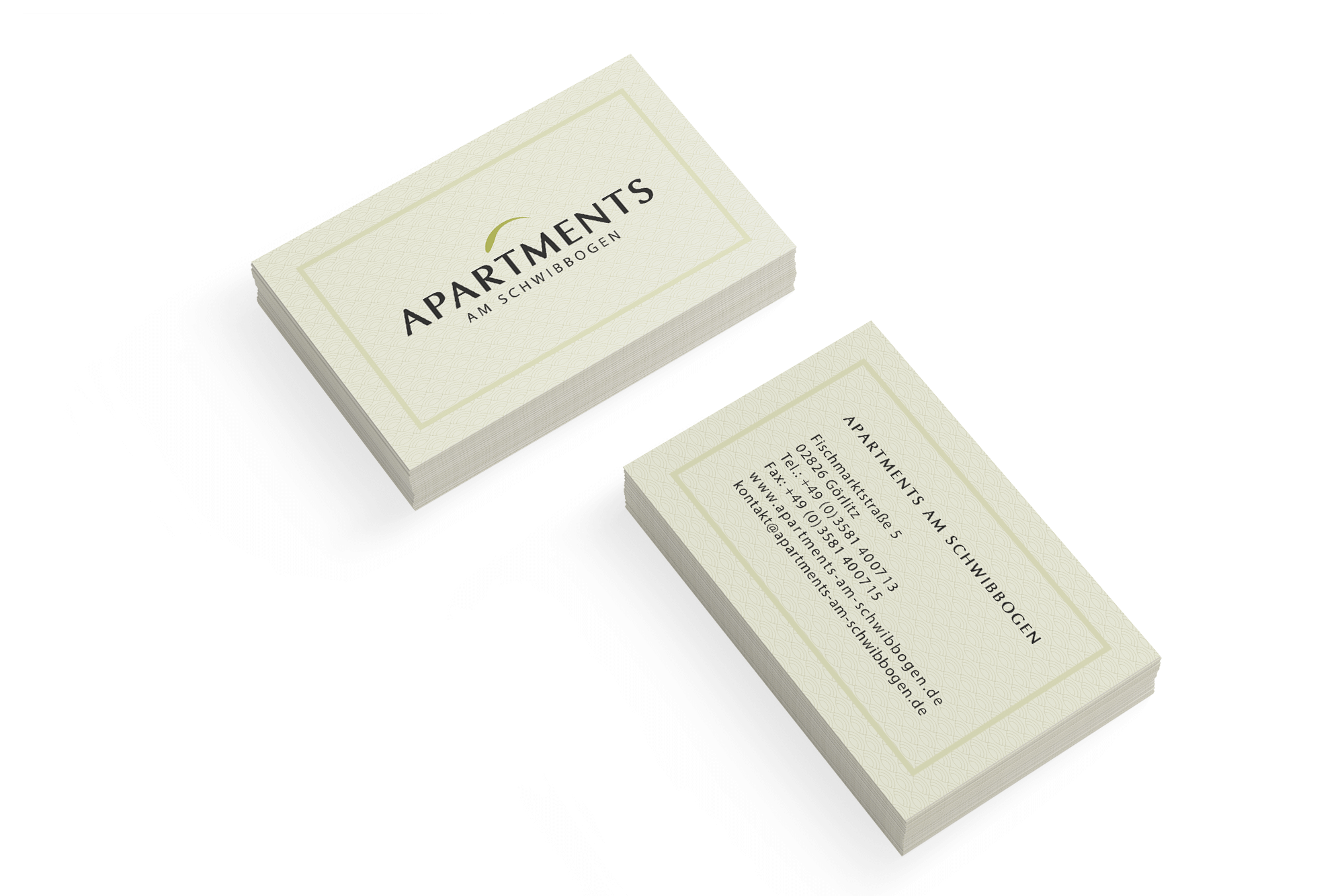 Erstellung Visitenkarte 2-seitig im Corporate Design der Apartments am Schwibbogen Görlitz.