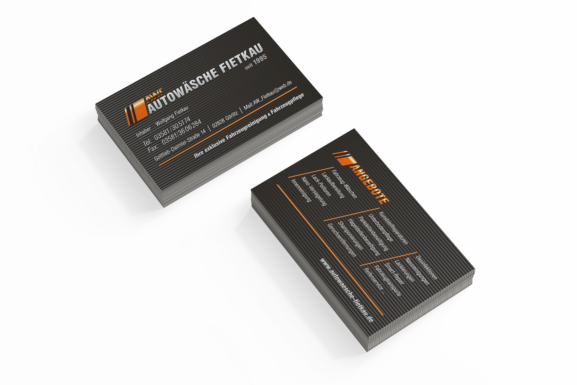Erstellung Visitenkarte 2-seitig im Corporate Design der Autowäsche Wolfgang Fietkau.